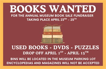 The Annual Book Sale is a fundraiser that supports the BCHS and its mission to collect, preserve and disseminate the history and heritage of Brown County, Minnesota. More specifically the funds raised support public programs provided by the society including exhibits, lectures, school tours, out-reach programs for schools and organizations, and hands-on learning for all ages.