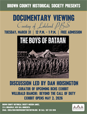 Join us for a documentary viewing courtesy of Lakeland PBS: "The Boys of Bataan", with a discussion led by Dan Hoisington, curator of the upcoming BCHS exhibit "Willibald Bianchi: Beyond the Call of Duty".
